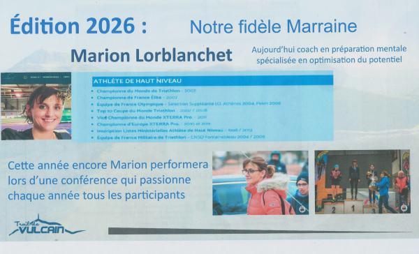 Cette année encore, notre fidèle marraine Marion Lorblanchet sera avec nous au complexe sportif et assurera une conférence le samedi de 16h00 à 17h00, toujours très passionnante pour les participants .